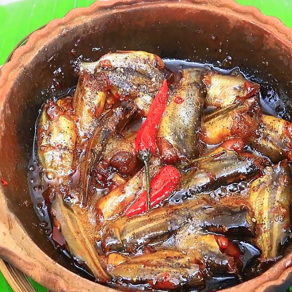 Đảo đều nguyên liệu và kho ở mức lửa vừa phải. Kho trong khoảng 15 phút thì bạn thấy cá đã bắt đầu thấm gia vị kho lên màu sắc cực kỳ hấp dẫn thì bạn cho tiêu, hành lá vào để tăng hương vị và tắt bếp.